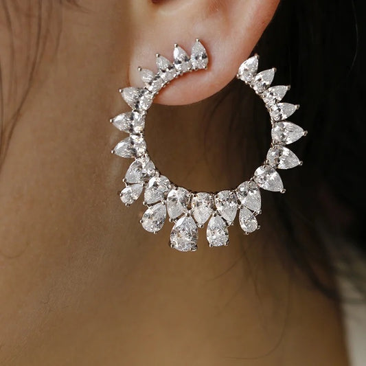 Silver Statement Circular Shaped Hoop Earrings